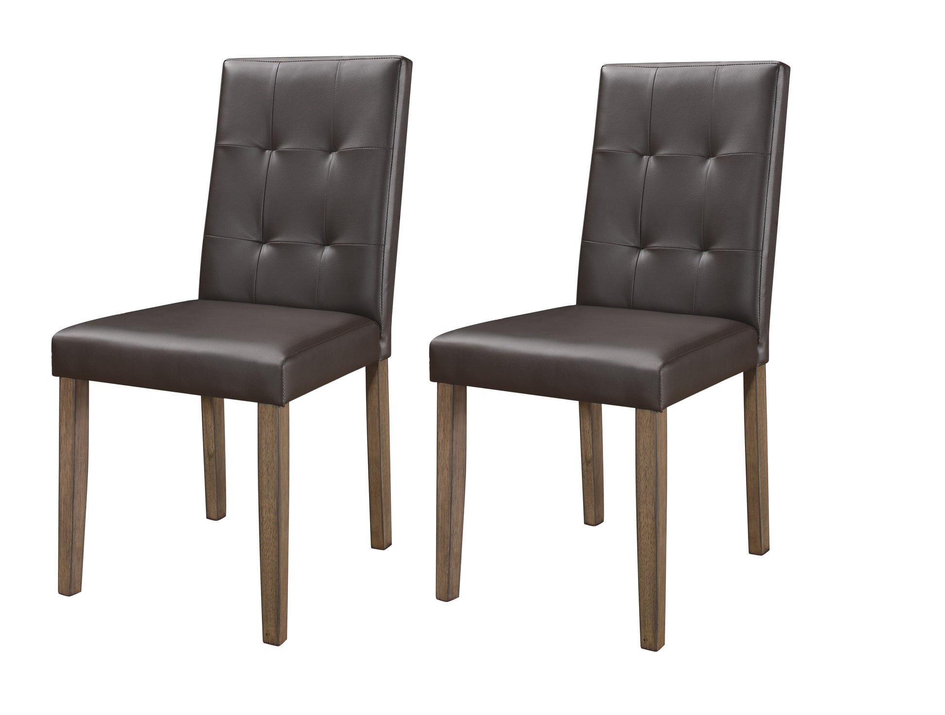 Scaled for a smaller dining space, the Ahmet Collection provides comfortable seating for four. The rectangular table’s walnut brown finish highlights the ash veneer and provides complementing contrast to the brown faux leather seats and backs of the side chairs, all blending to create neutral accent to your decorative palette.