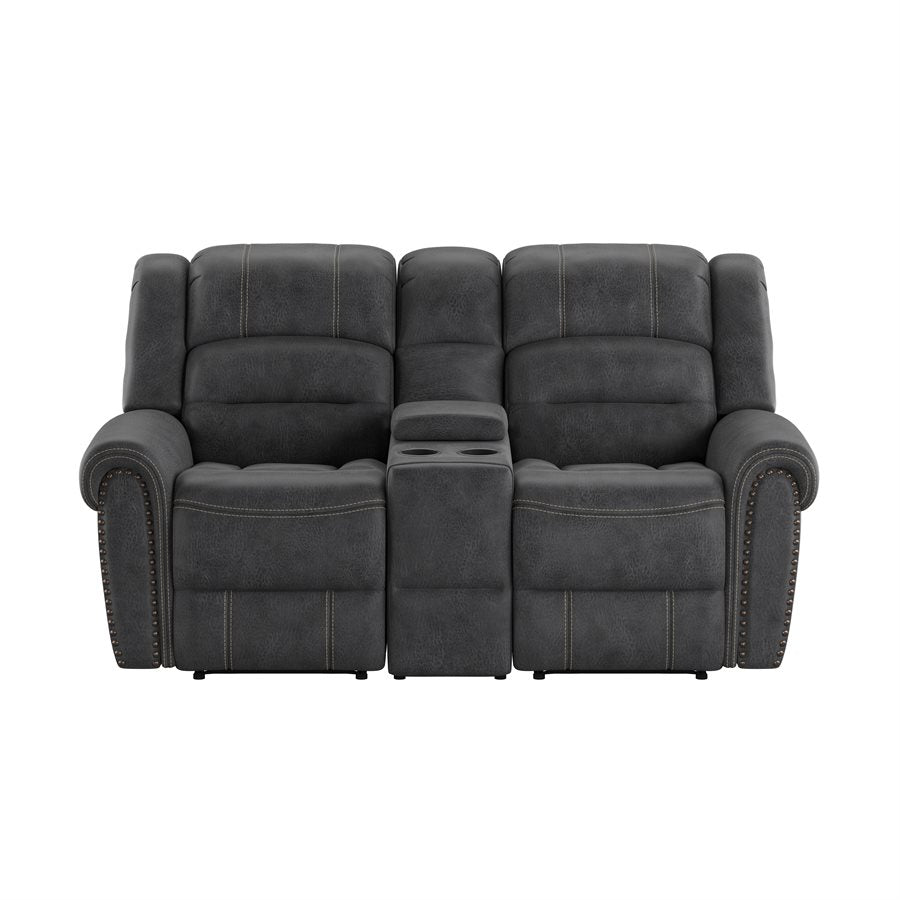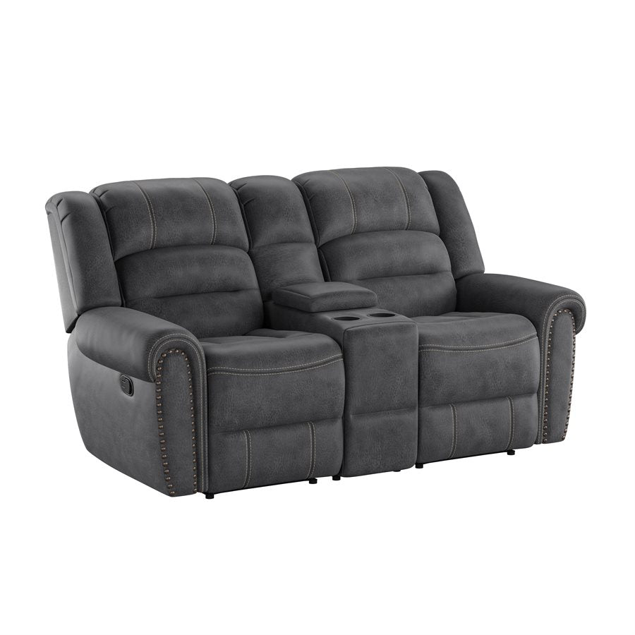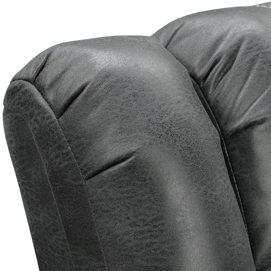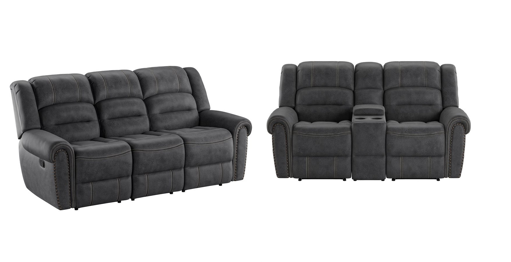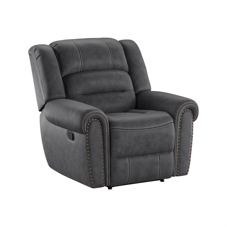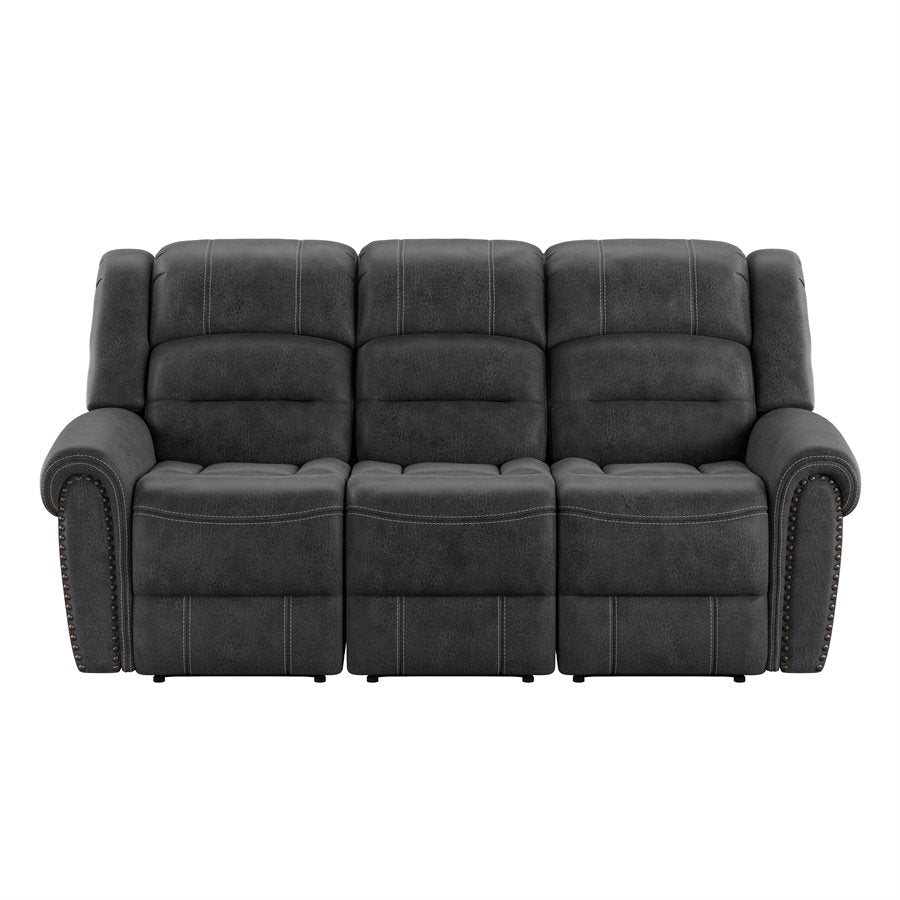 The Baldwin motion collection disproves the idea that good looks must be sacrificed for comfort. Rolled arms, nailhead trim, and contrast baseball stitching establish the traditional form. The weathered texture of faux leather is further enhanced by a distinguished slate gray color with blue undertones. Get a classic, traditional look with the Baldwin collection.