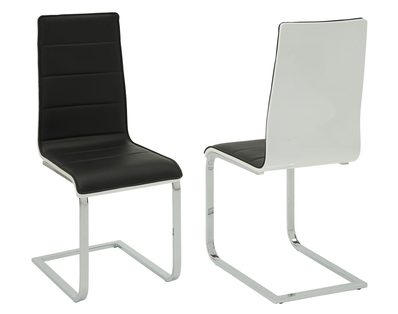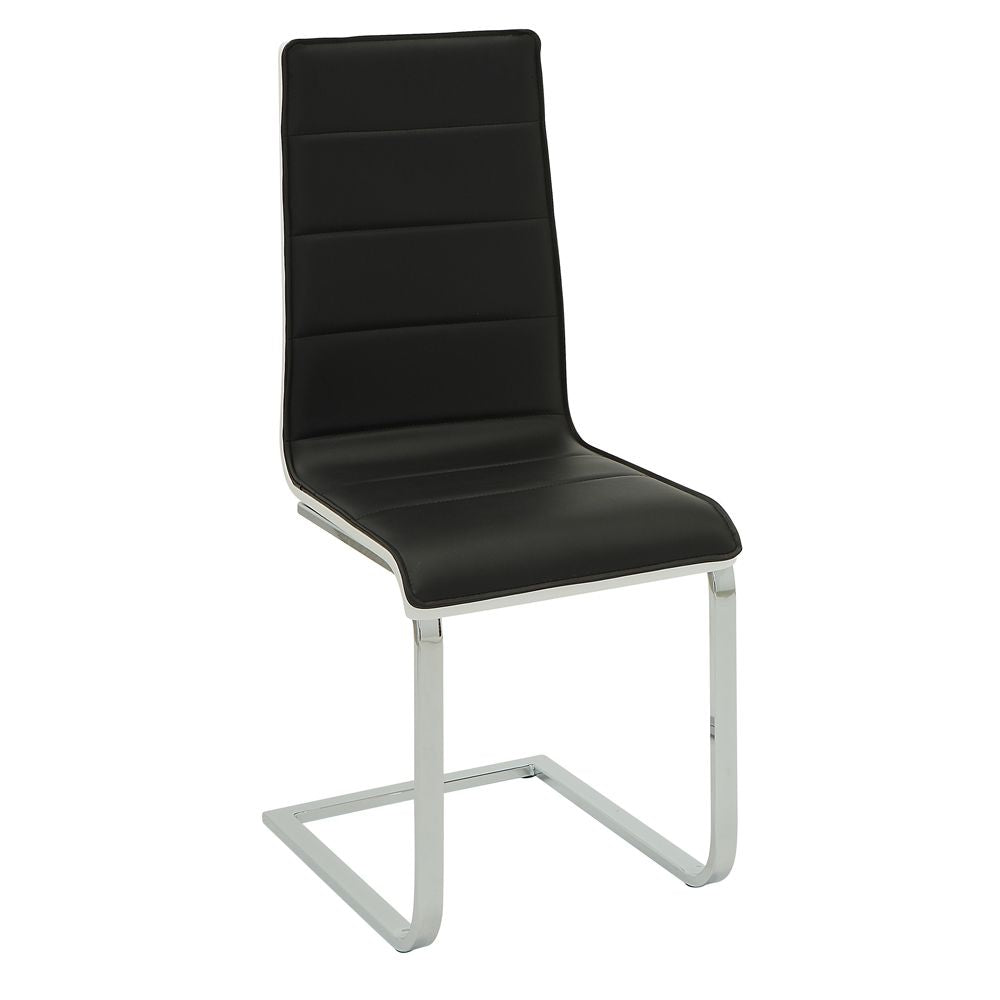 Upgrade your dining area with this stunning contemporary five-piece dining set. The show-stopper is the rectangular glass tabletop, which floats elegantly on a chrome-finished asterisk metal base. Dining chairs are upholstered in contrasting black and white leatherette, featuring channel stitching that highlights their sleek lines. The chrome finish on the base and legs of the chairs and table adds a touch of glamour and pizzazz to your dining space. With clean lines and eye-catching design, this dining set is perfect for a modern home.