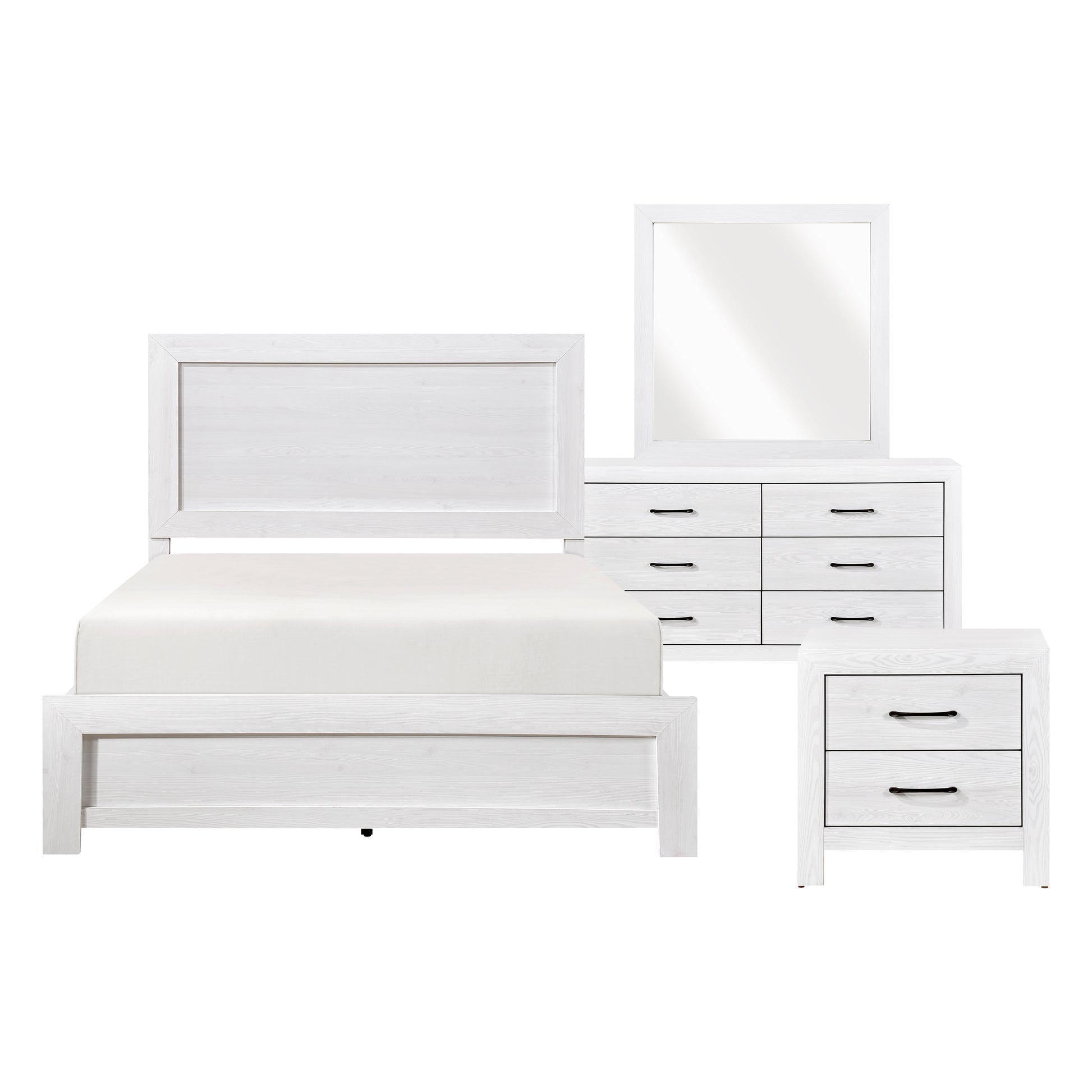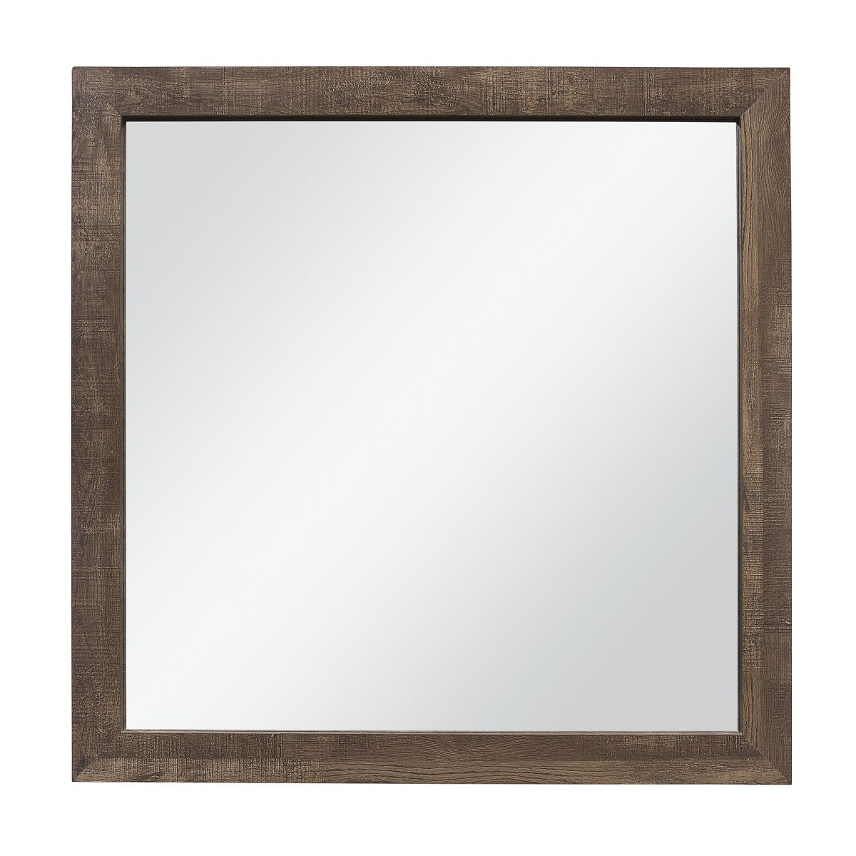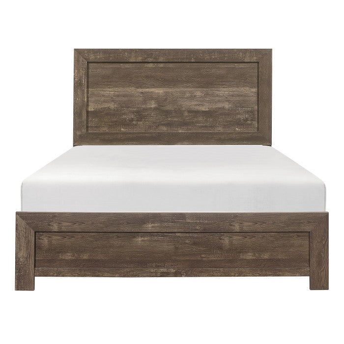 Modern lines and rustic styling are paired to create the look of the Corbin Collection. The 3D printed paper veneer’s texture is highlighted by a gray or brown finish for a realistic wood look. Providing complementing contrast, the drawer fronts of the dresser, chest and nightstand feature black metal hardware. Subtle framing defines the profile of the headboard and footboard, further lending to the unfettered design of the collection.