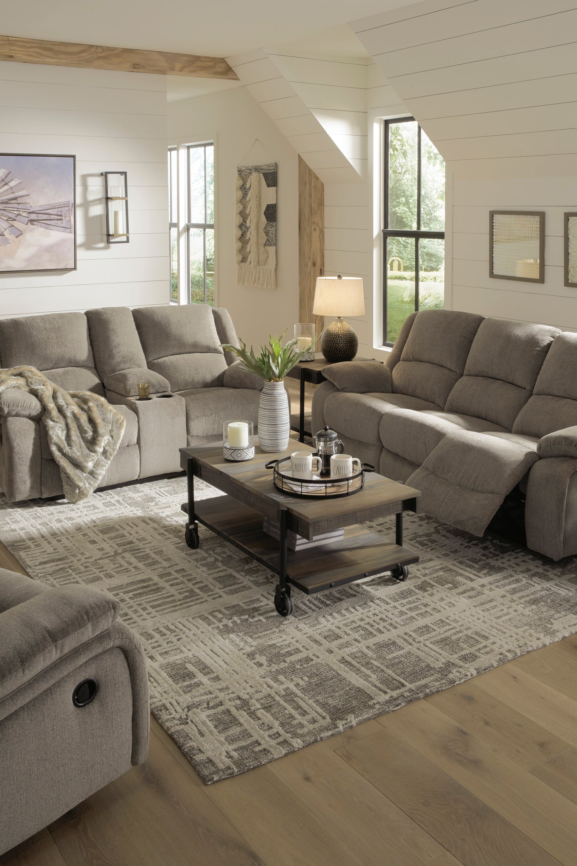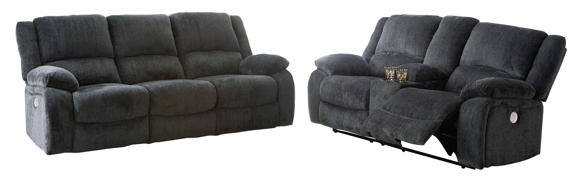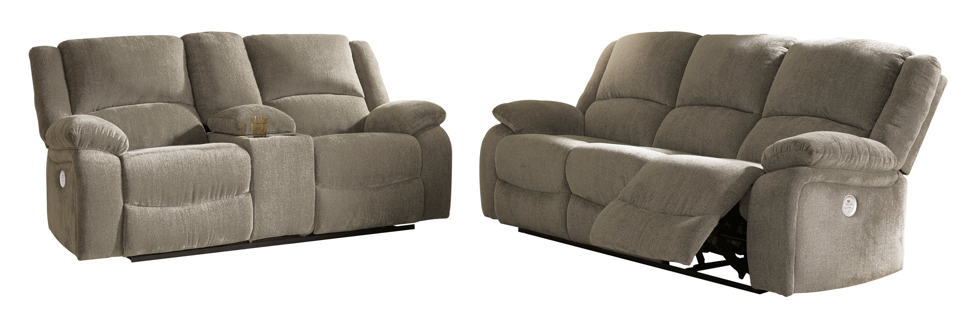 Built for luxury, the Draycoll set lets you kick back in reliable style. The thick, softly textured chenille upholstery provides a comfy surface on which to lounge. With bustle back construction and thickly cushioned armrests, this piece gives you the dependable support you need to unwind after a trying day. Get it on manual or power