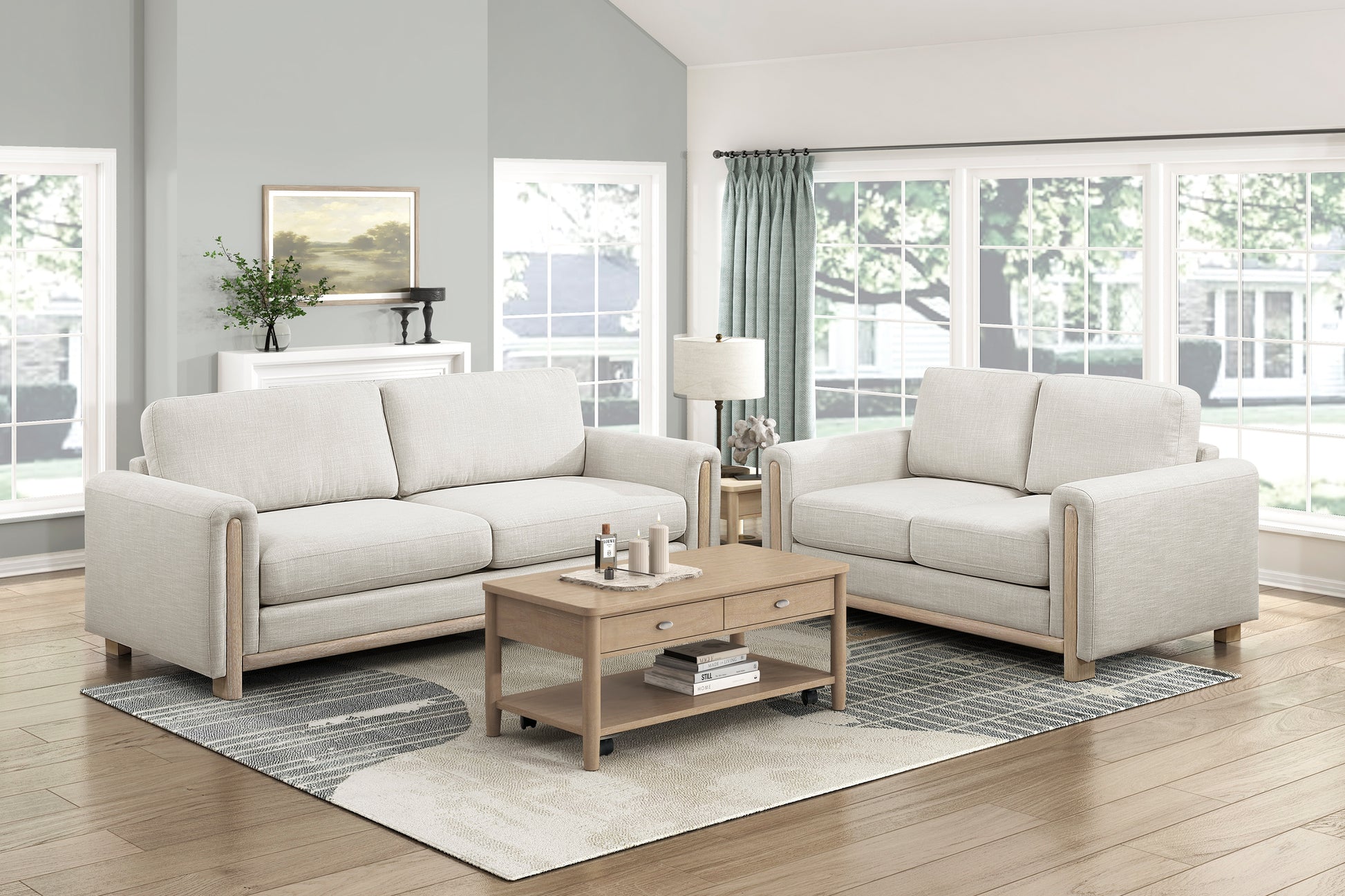 Discover the modern comfort collection, where sophisticated style meets everyday practicality. Each piece, from our inviting chair to our spacious sofa and cozy loveseat, features clean lines, exposed solid wood framing, and comfortable textured fabric. Built with durable solid wood and plywood frames, high-density foam over pocket coils, and elegant natural-finished legs, these pieces offer lasting durability and a plush seating experience. Enjoy the added convenience of reversible back cushions and removable zippered covers for easy maintenance and a consistently fresh look. Perfect for any contemporary living space.