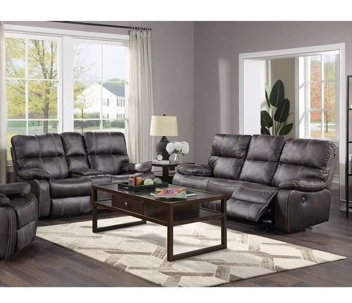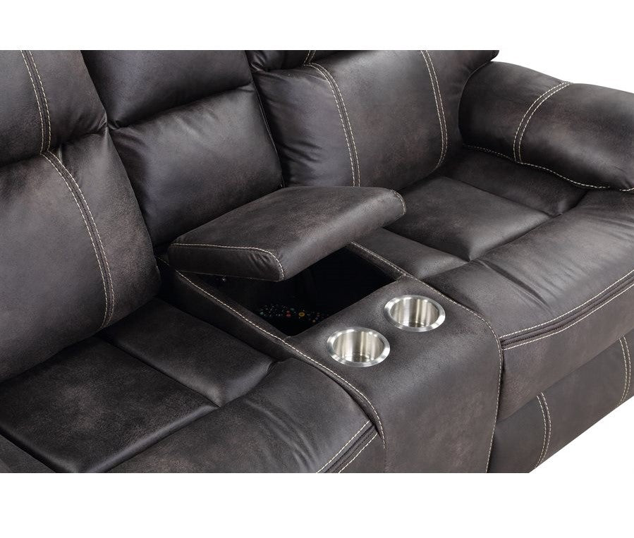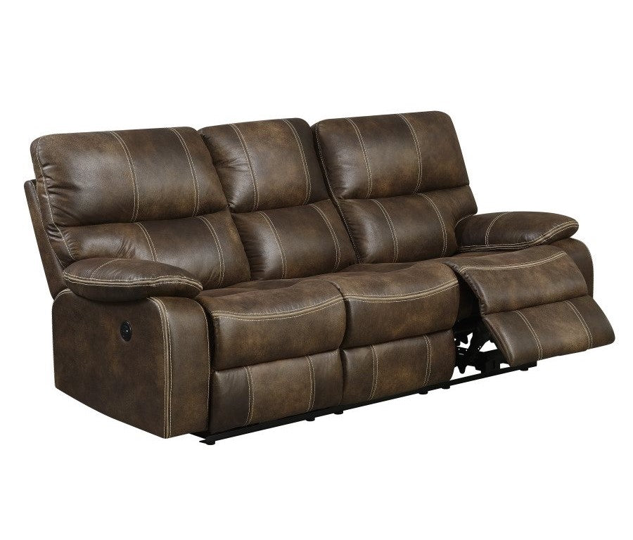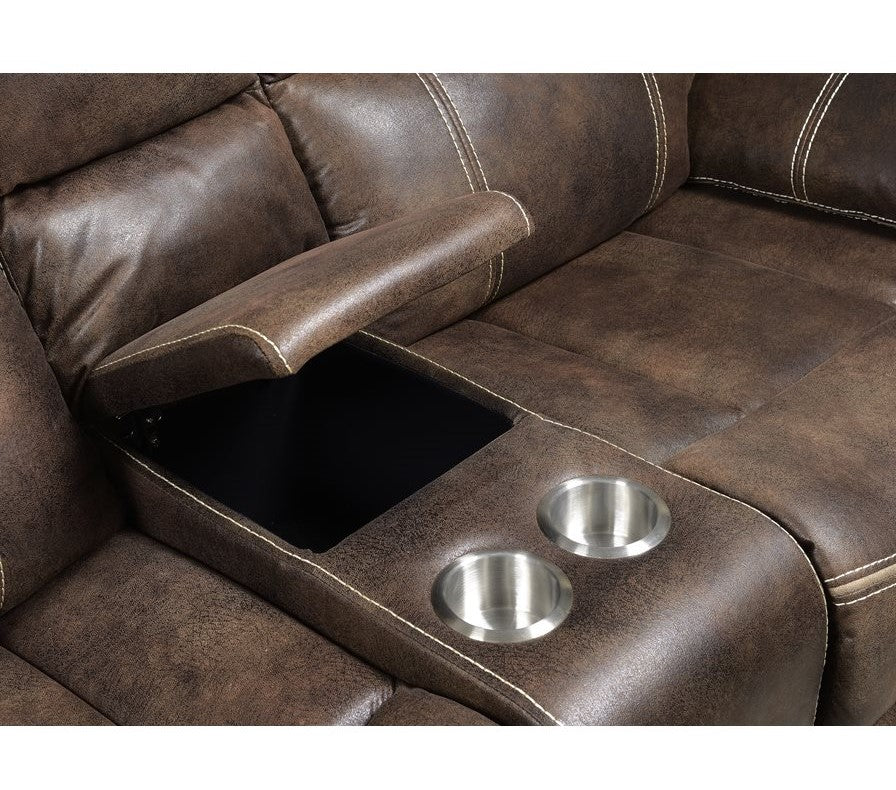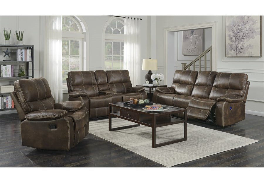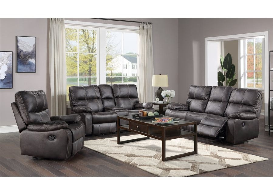 The Jessie James motion collection offers luxury and style with ultimate comfort and convenience. The richly colored faux leather is contrasted by white topstitching creating an eye-catching detail. The well-positioned recline feature handle blends in nicely, offering modern amenities within a traditional design. You can have comfort without sacrificing style with the Jessie James collection.