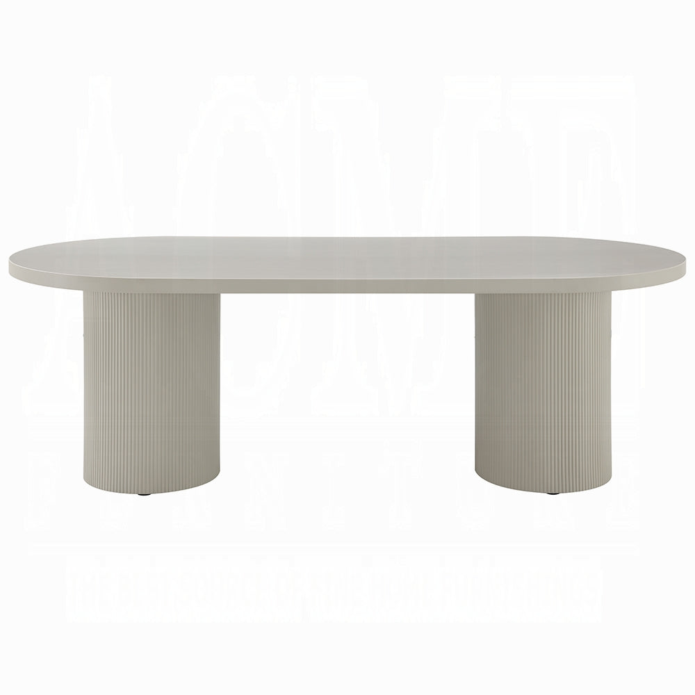 Introduce our Laela dining set, featuring an oval wooden top and sturdy double pedestals, combines elegance with modern design. The fixed table top provides a stable surface for your dining needs, while the upholstered side chairs offer comfort and style. Perfect for creating memorable dining experiences, the Laela collection transforms any dining space into a sophisticated haven.