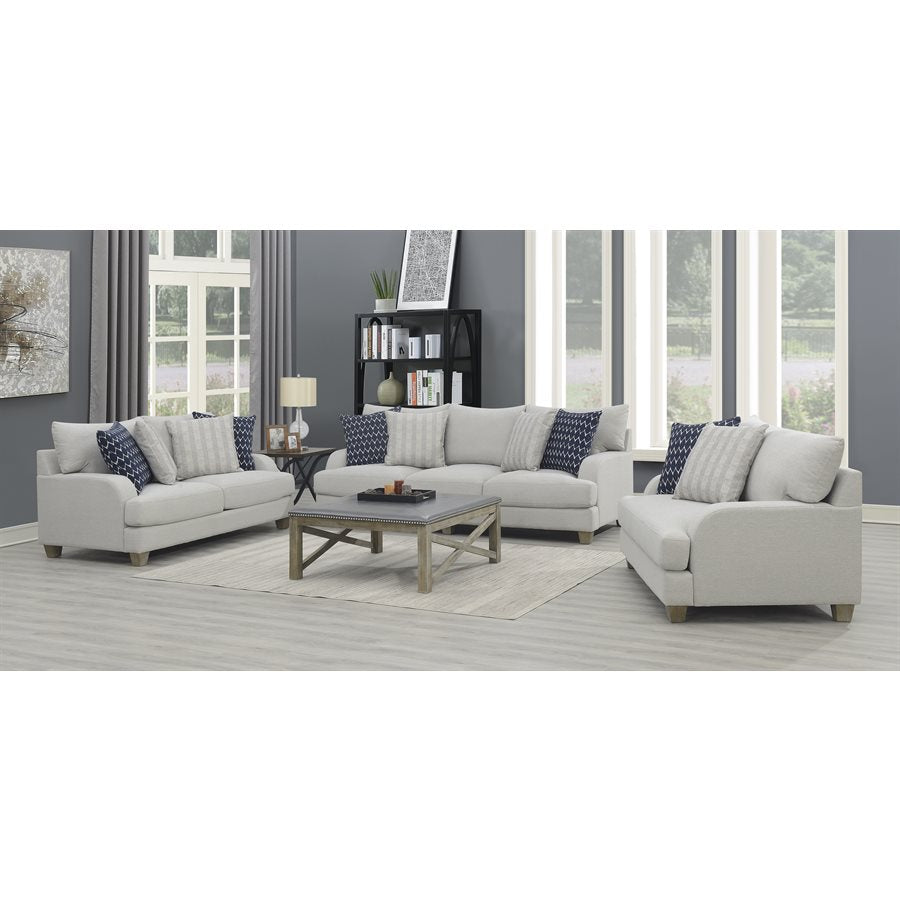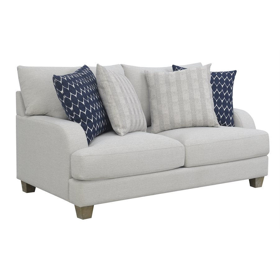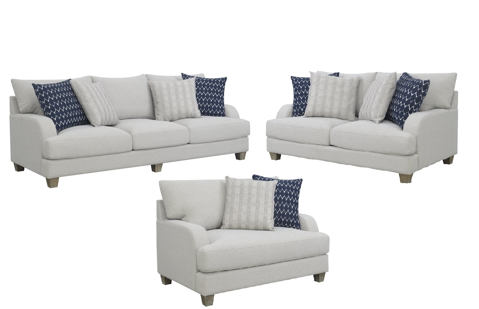 When you want to freshen up your living room, the beautiful Laney collection is at the ready. The classic silhouette is given a subtle update in this transitional design. It features large, comfy cushions in subtle harbor gray color with patterned accent pillows for a pop of color. Whether you’re settling in with a good book or entertaining for the evening, you'll love the Laney collection for years to come.
