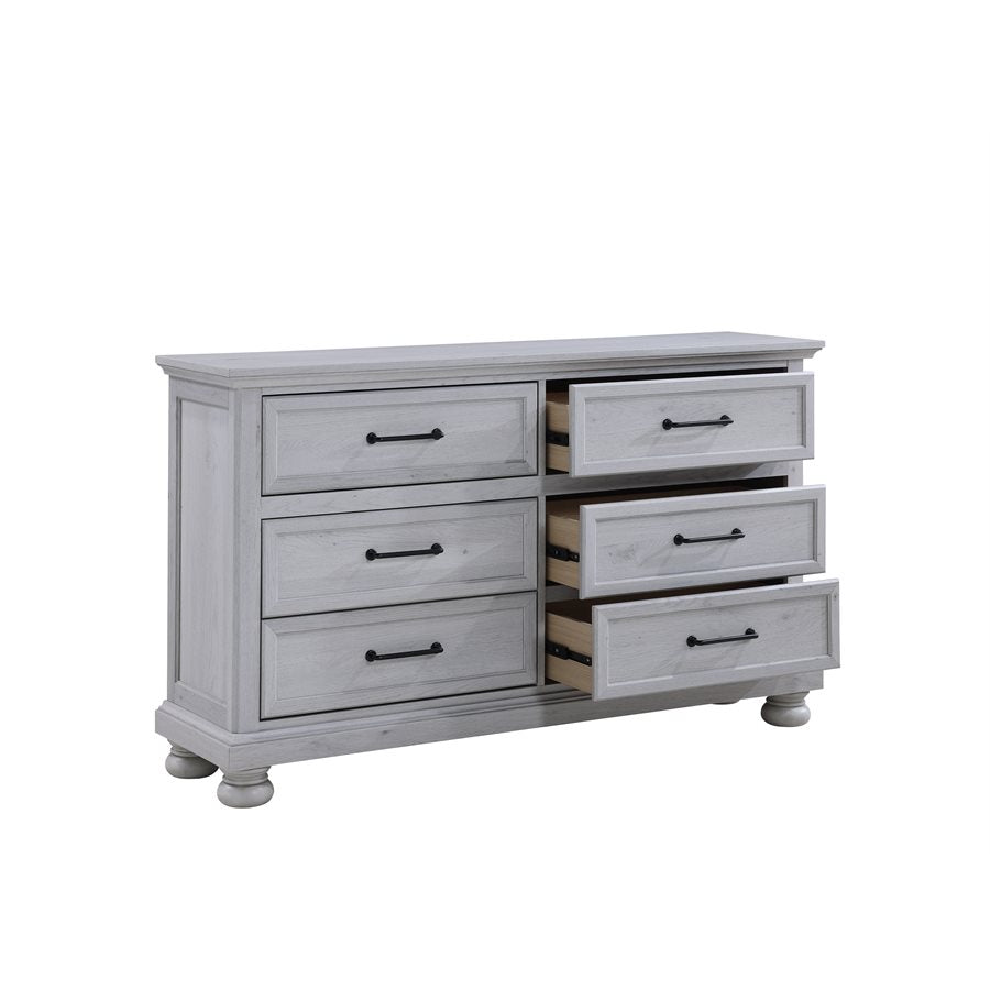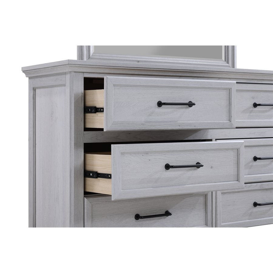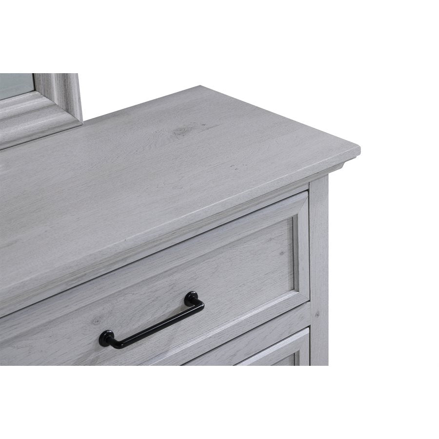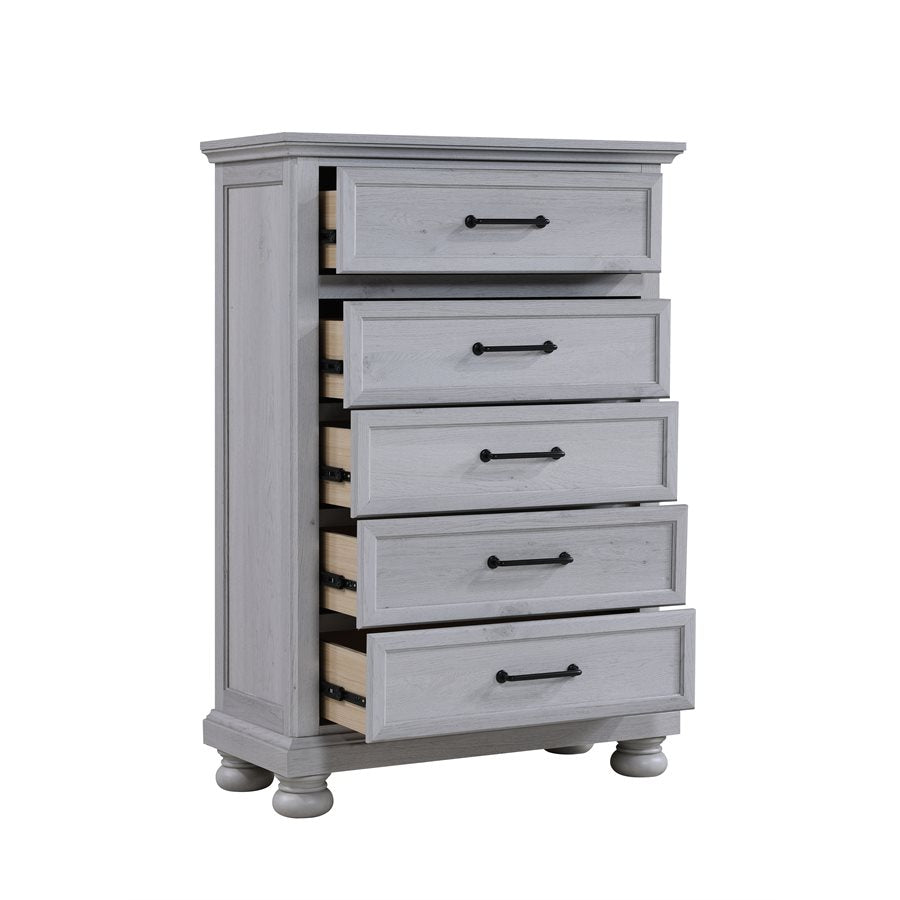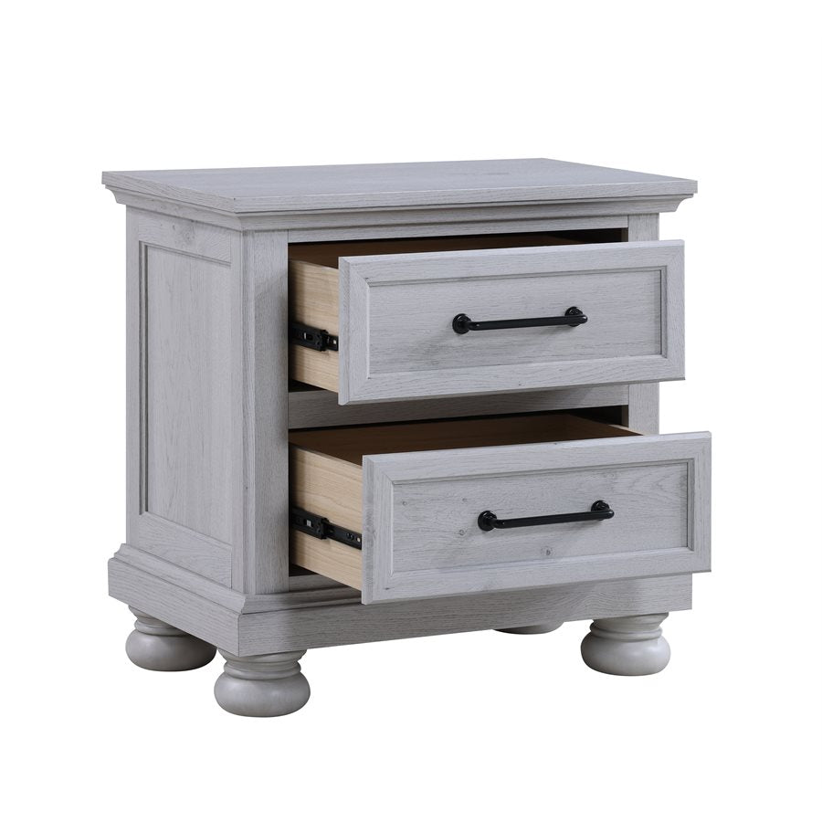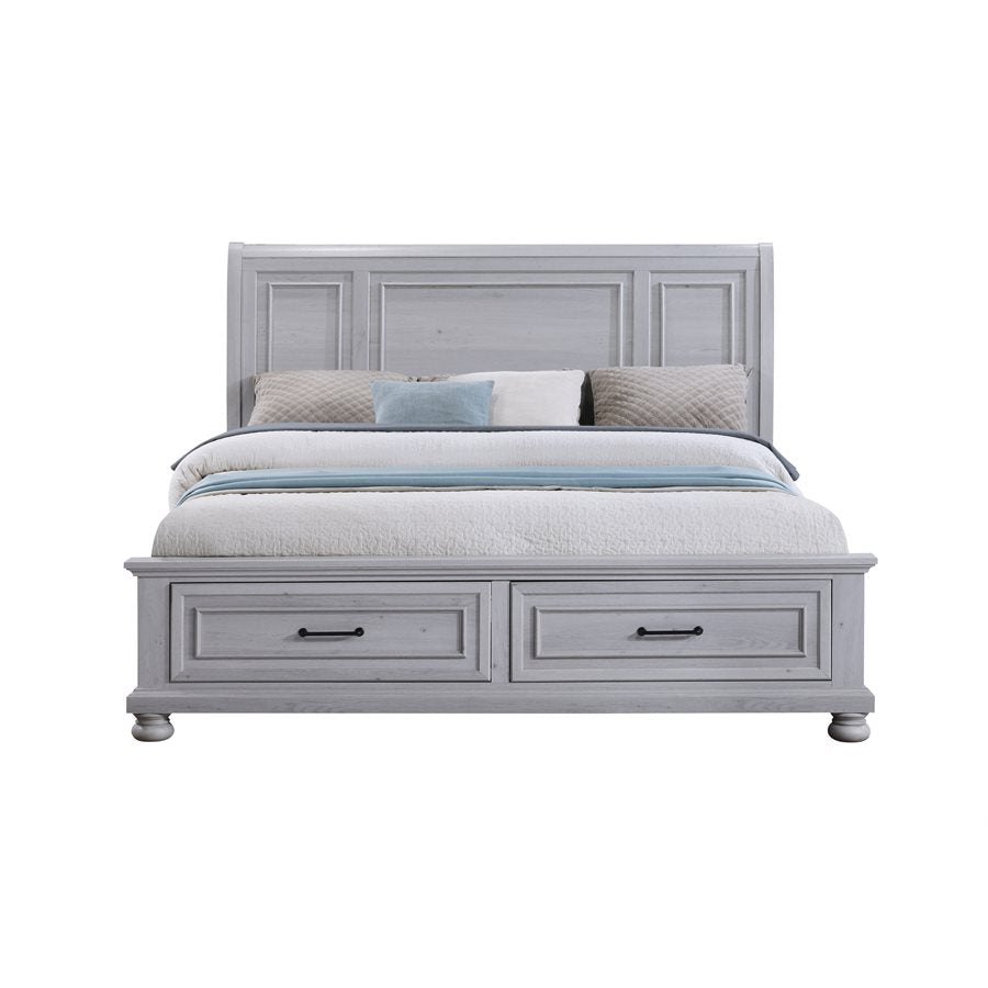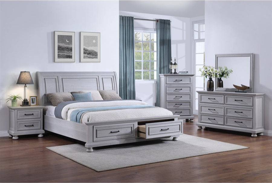 Transform your bedroom with the Larksmont Collection, a perfect blend of timeless elegance and modern functionality. Featuring a soft, weathered gray finish, sturdy construction, and sleek black metal hardware, this collection brings a refined yet cozy ambiance to your space. The dresser, chest, and nightstand offer ample storage with smooth-gliding drawers, while the bed includes convenient built-in footboard storage. Whether you're looking for a complete set or a statement piece, the Larksmont Collection delivers style, durability, and practicality for a sophisticated bedroom retreat.