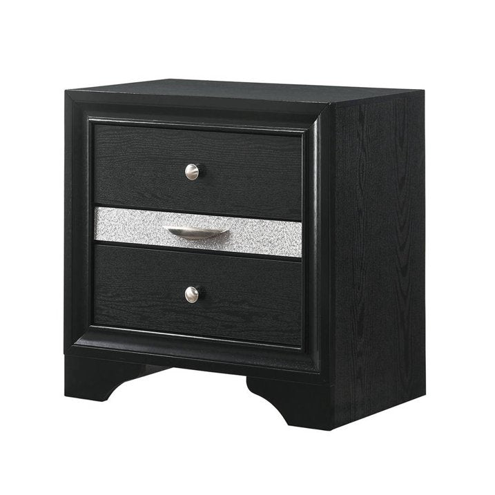 This bedroom group features contemporary styling and tons of storage options. Case pieces have felt lined drawers for delicate items and storage drawers are built into the bed footboard. Drawers are sturdy with Kenlin metal guides and dustproof bottoms help seal the cases.