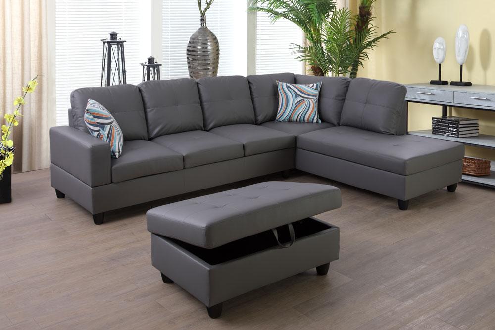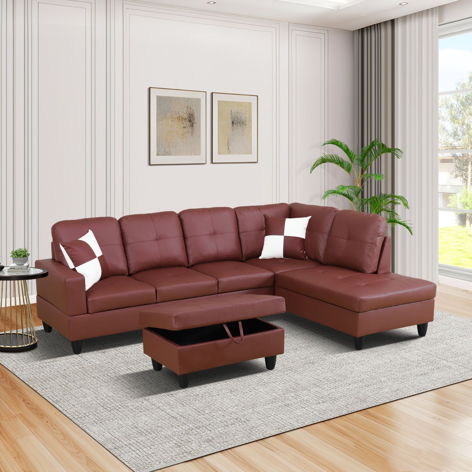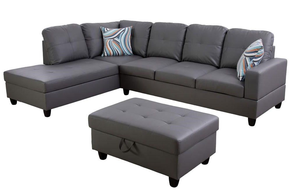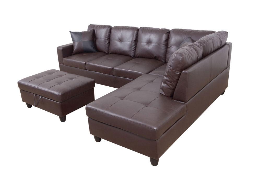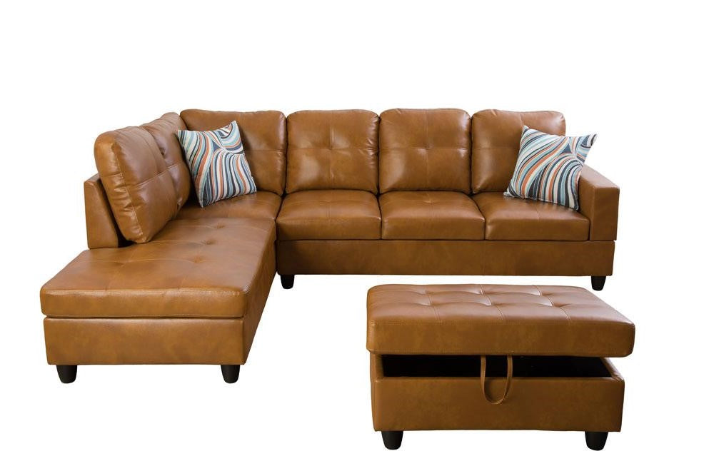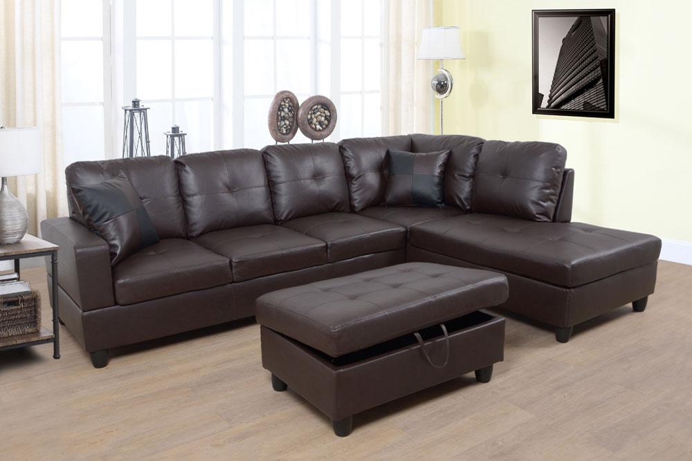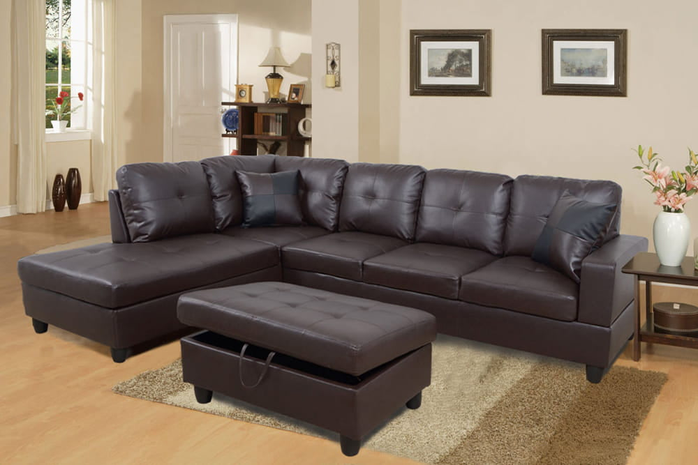 Sectional and Storage Ottoman Set, suitable for any traditional and contemporary home. Upholstered on Faux leather, available on multiple colors.
