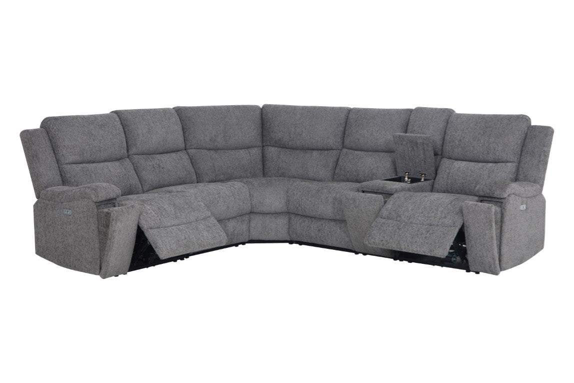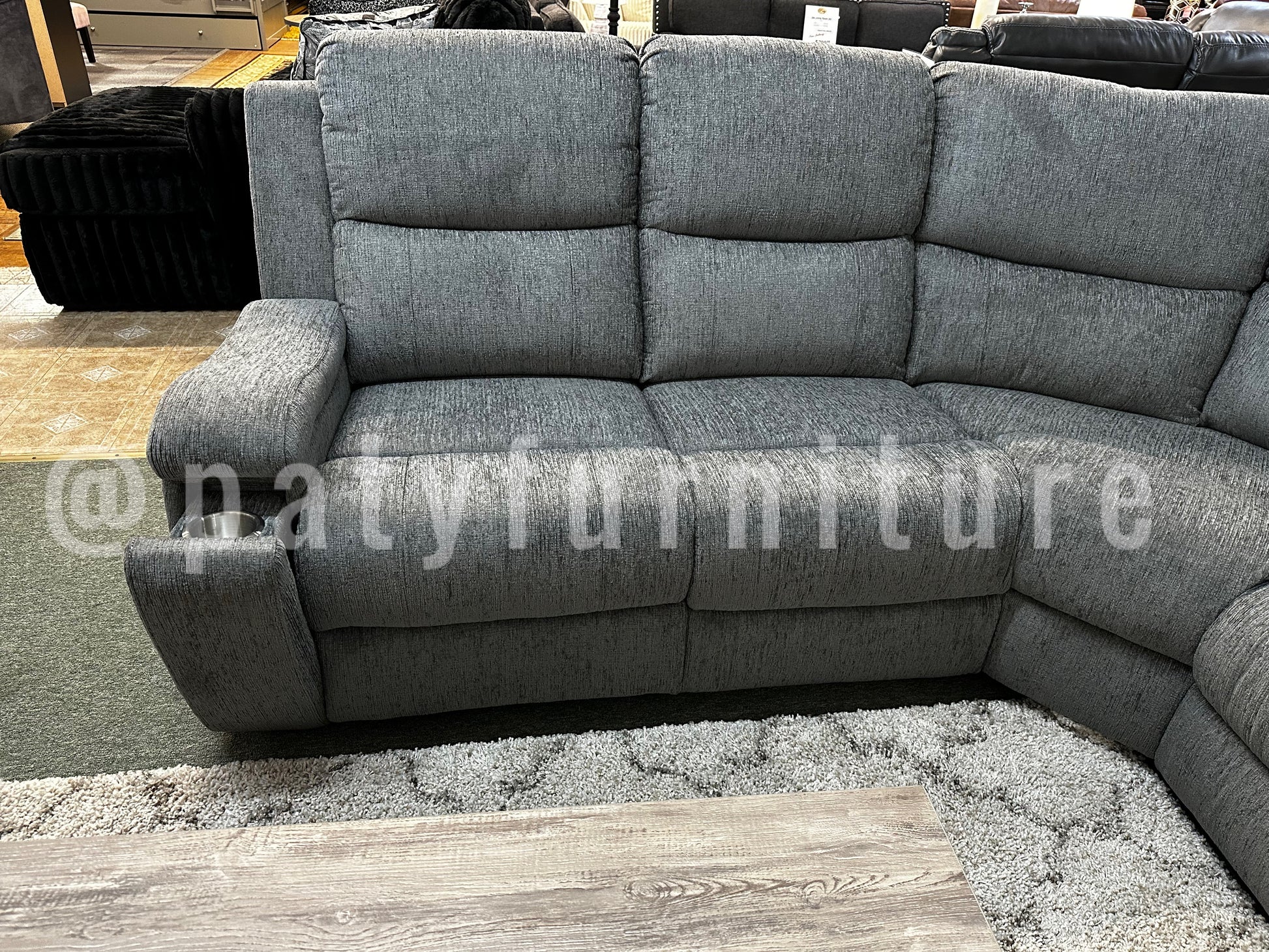 The Sierra Collection offers the perfect blend of modern comfort and smart functionality. This grey fabric power reclining sectional features dual power recliners on each end, integrated pop-out cup holders, and a hidden storage console with deep compartment space — ideal for keeping remotes, devices, or snacks within reach. The plush cushions, smooth reclining mechanisms, and padded armrests (with additional built-in storage) make it an excellent choice for relaxing, entertaining, or movie nights. Designed to maximize both space and comfort, the Sierra is your living room’s new favorite spot.