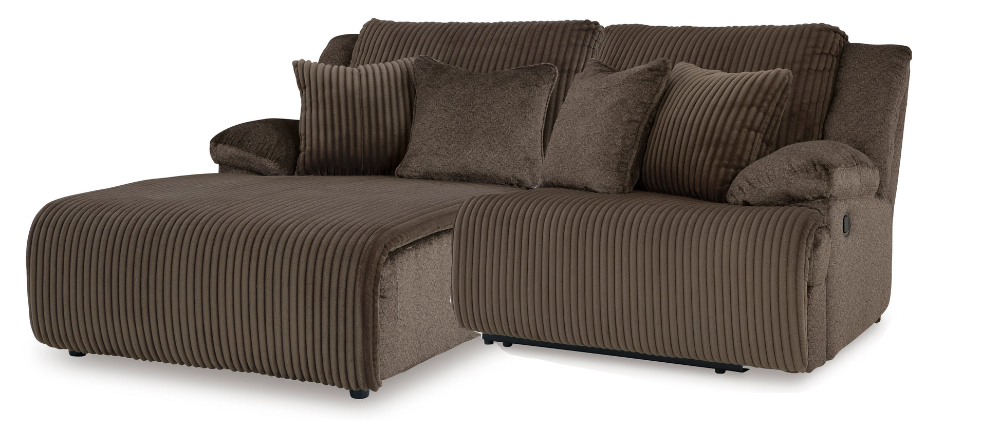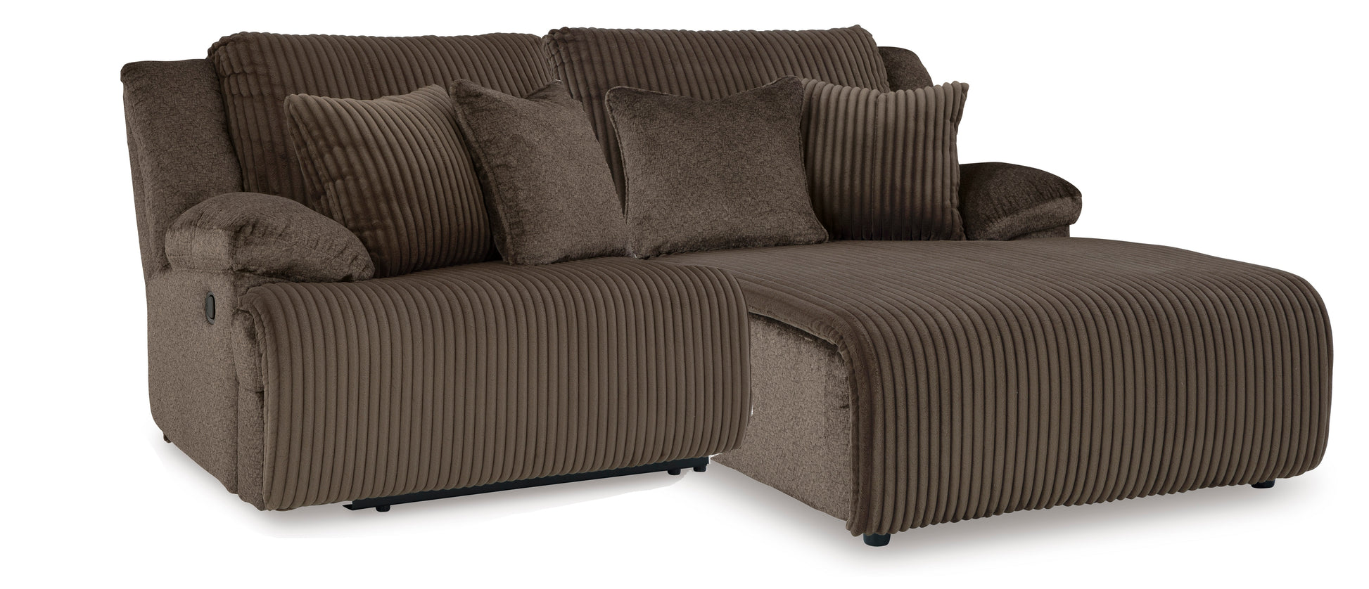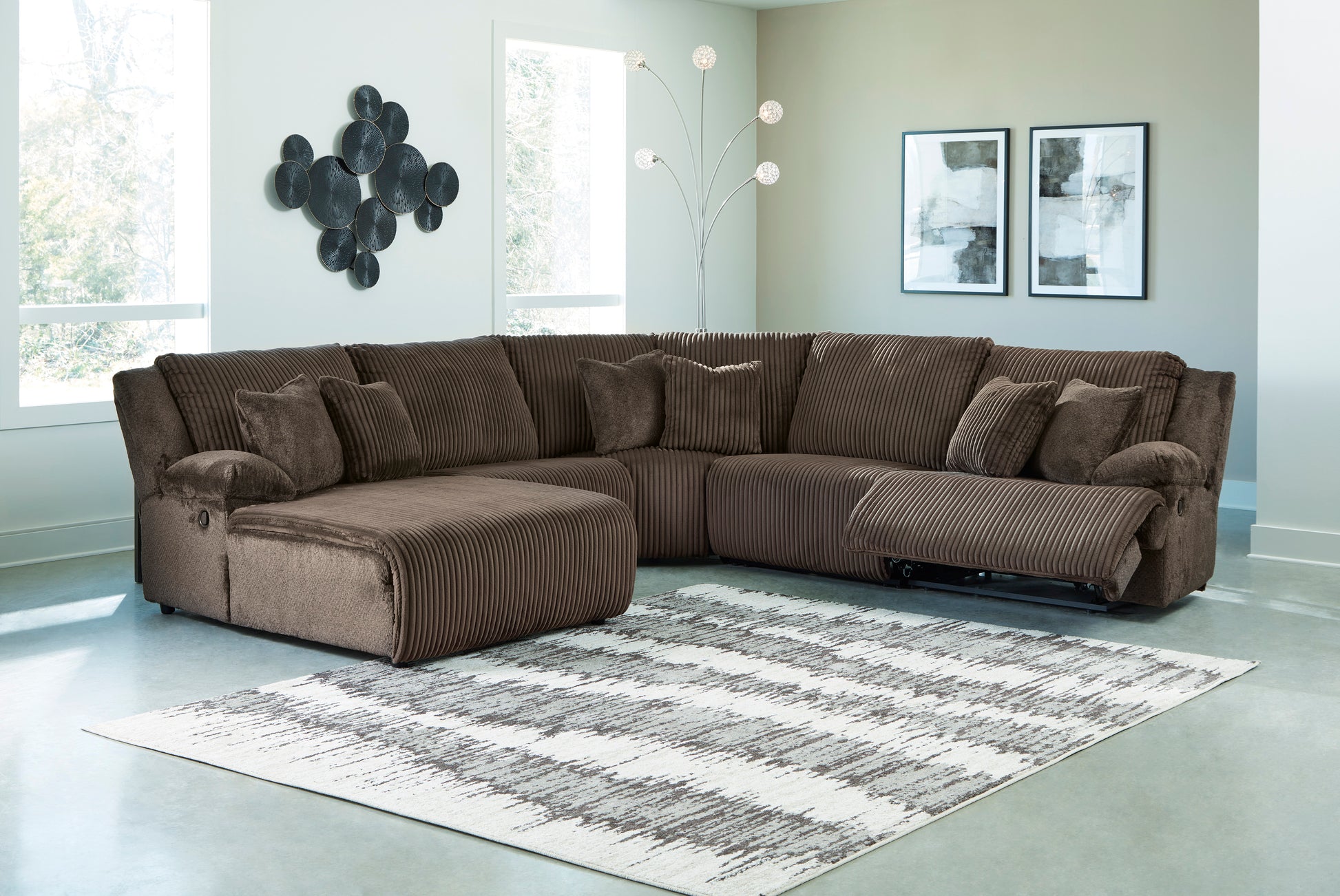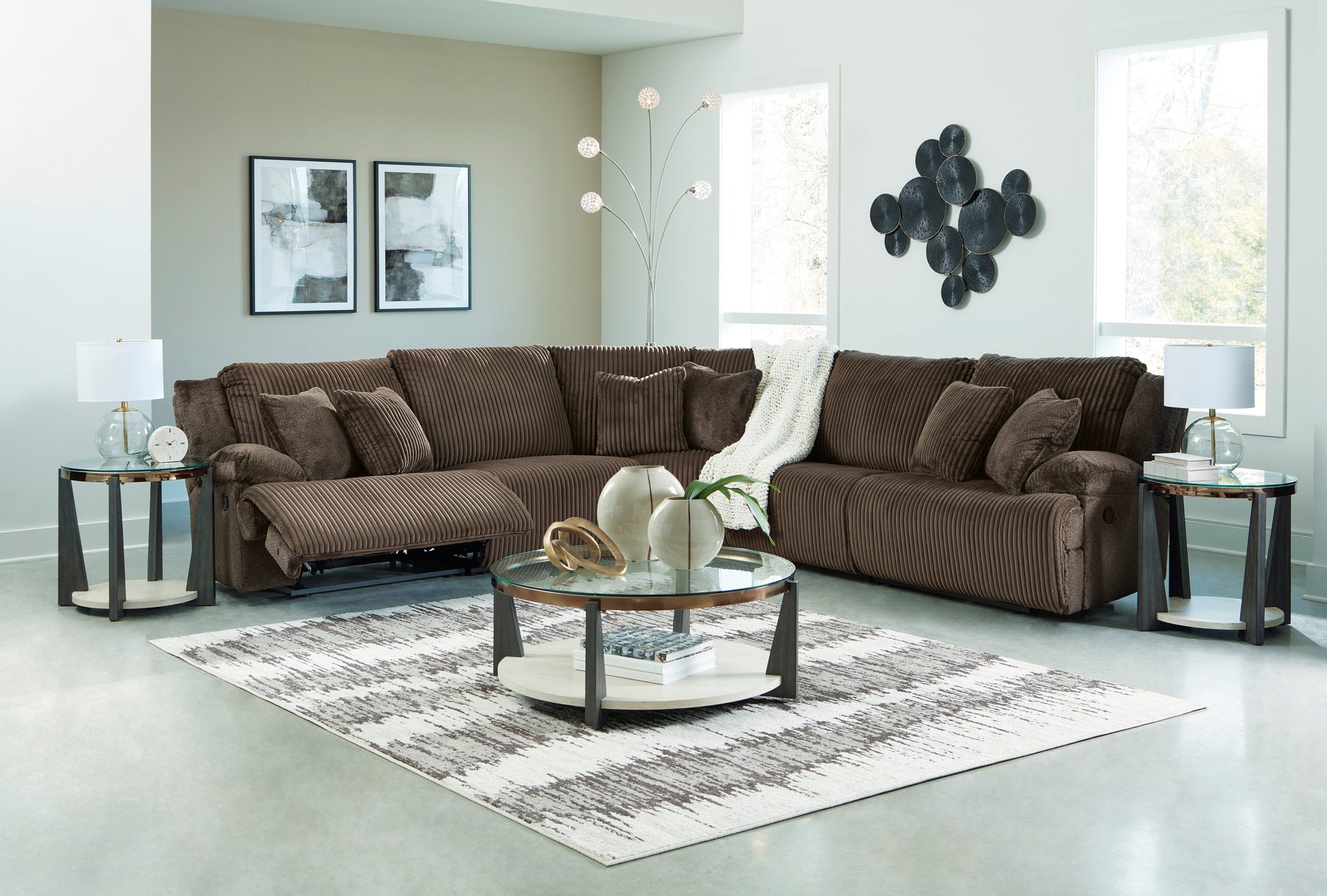Experience unparalleled comfort with this reclining sectional. It’s a stylish and invitingly soft look—made all the more appealing by cozy corduroy cushions that feel great and add a touch of texture. The rich chocolate brown upholstery effortlessly blends into your decor, making it a gorgeous addition to your home. So sit back and unwind in this spacious set, perfect for gatherings with friends and family.