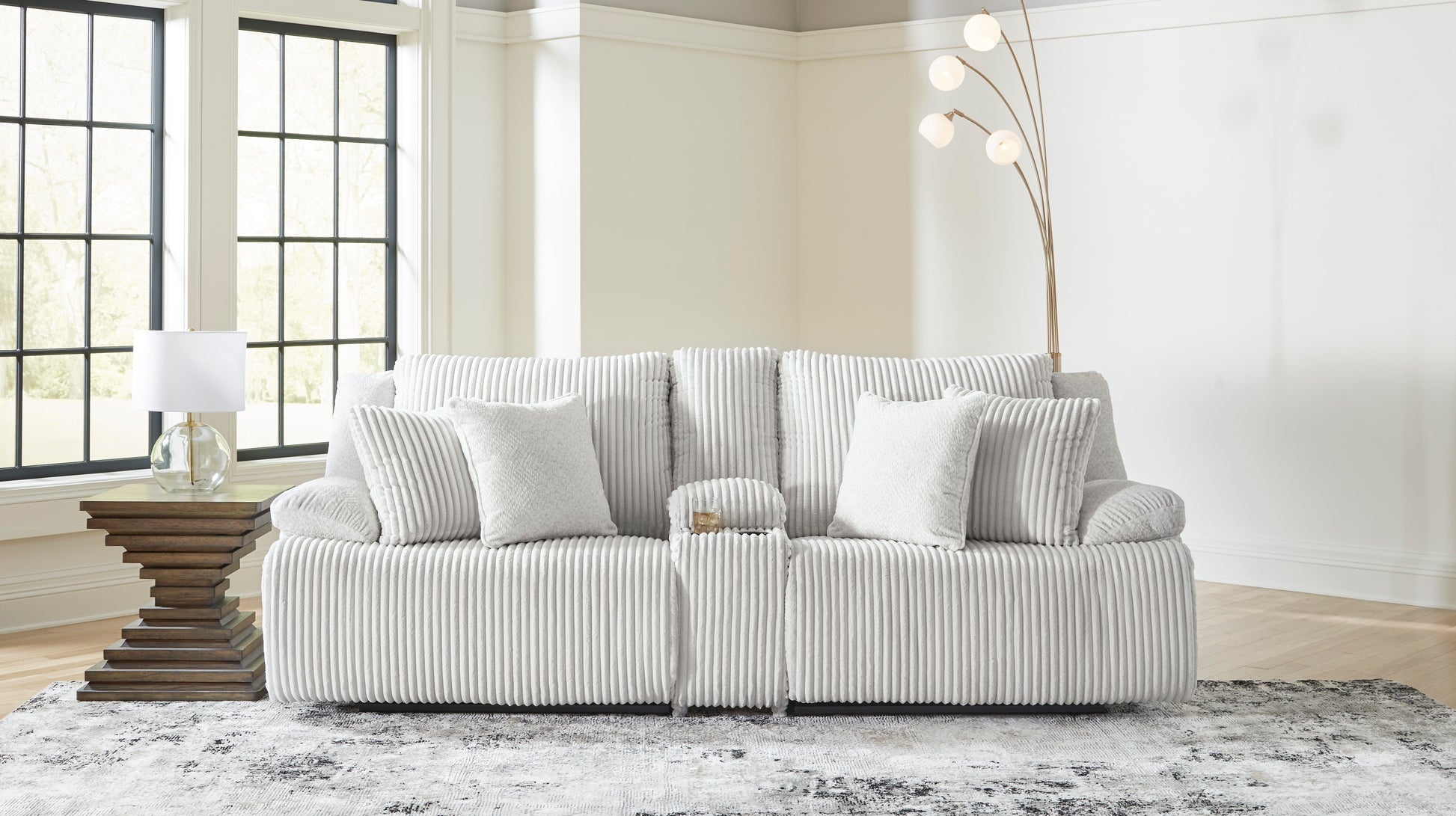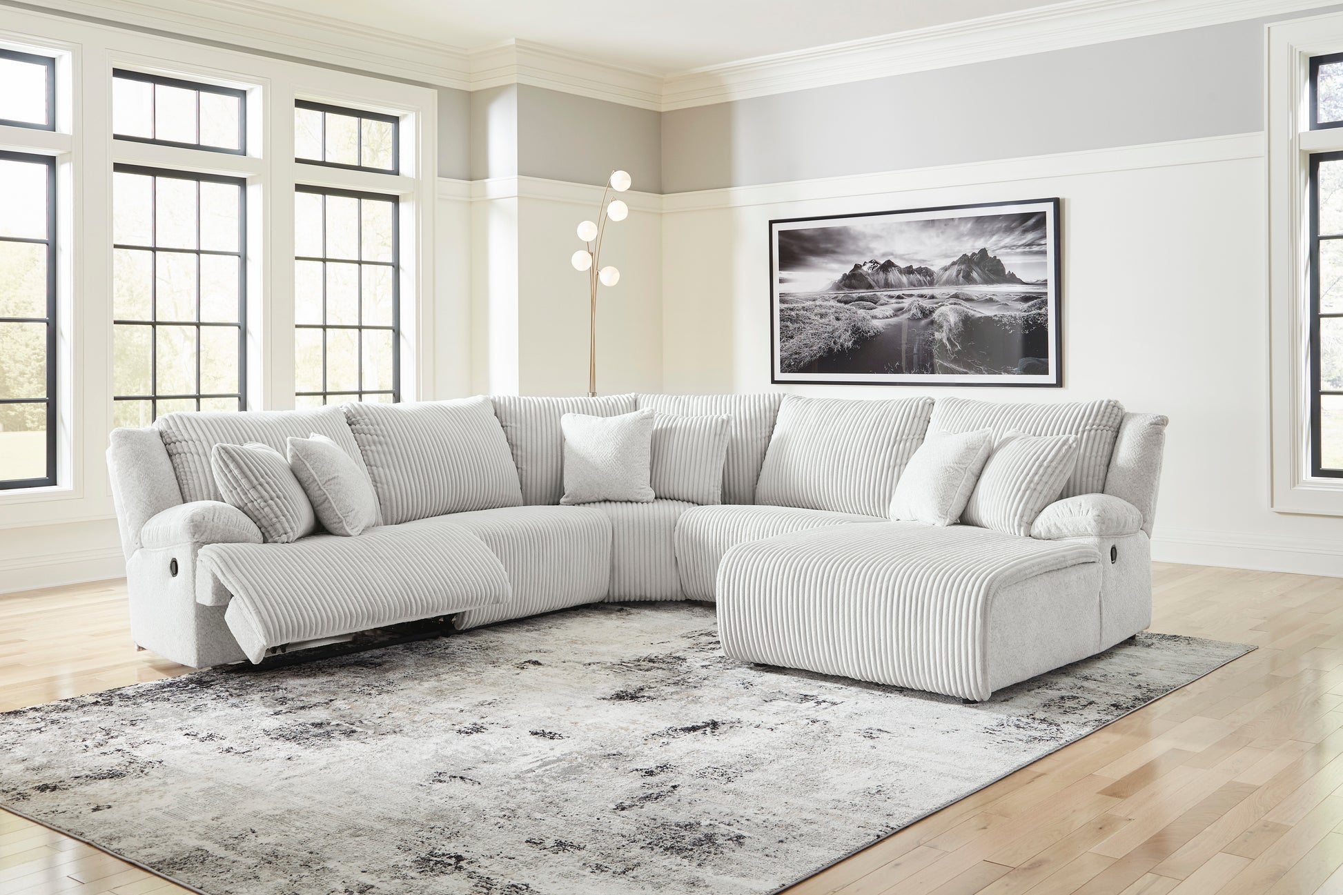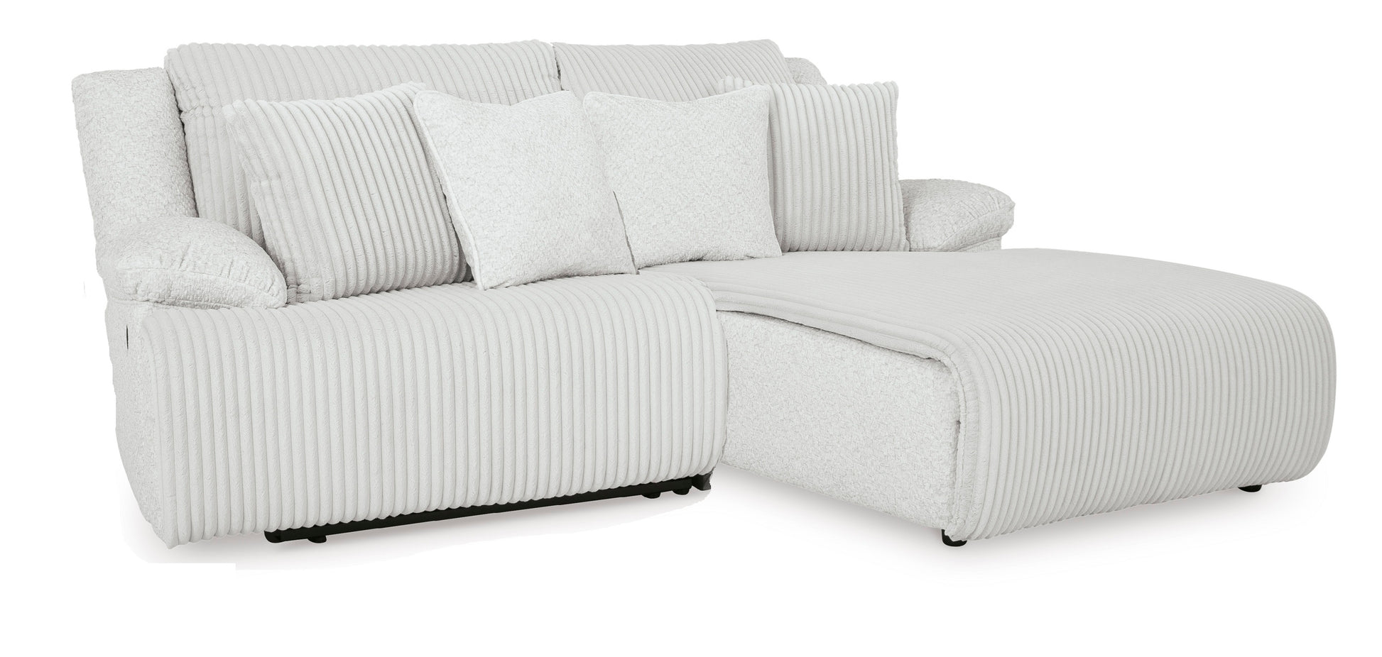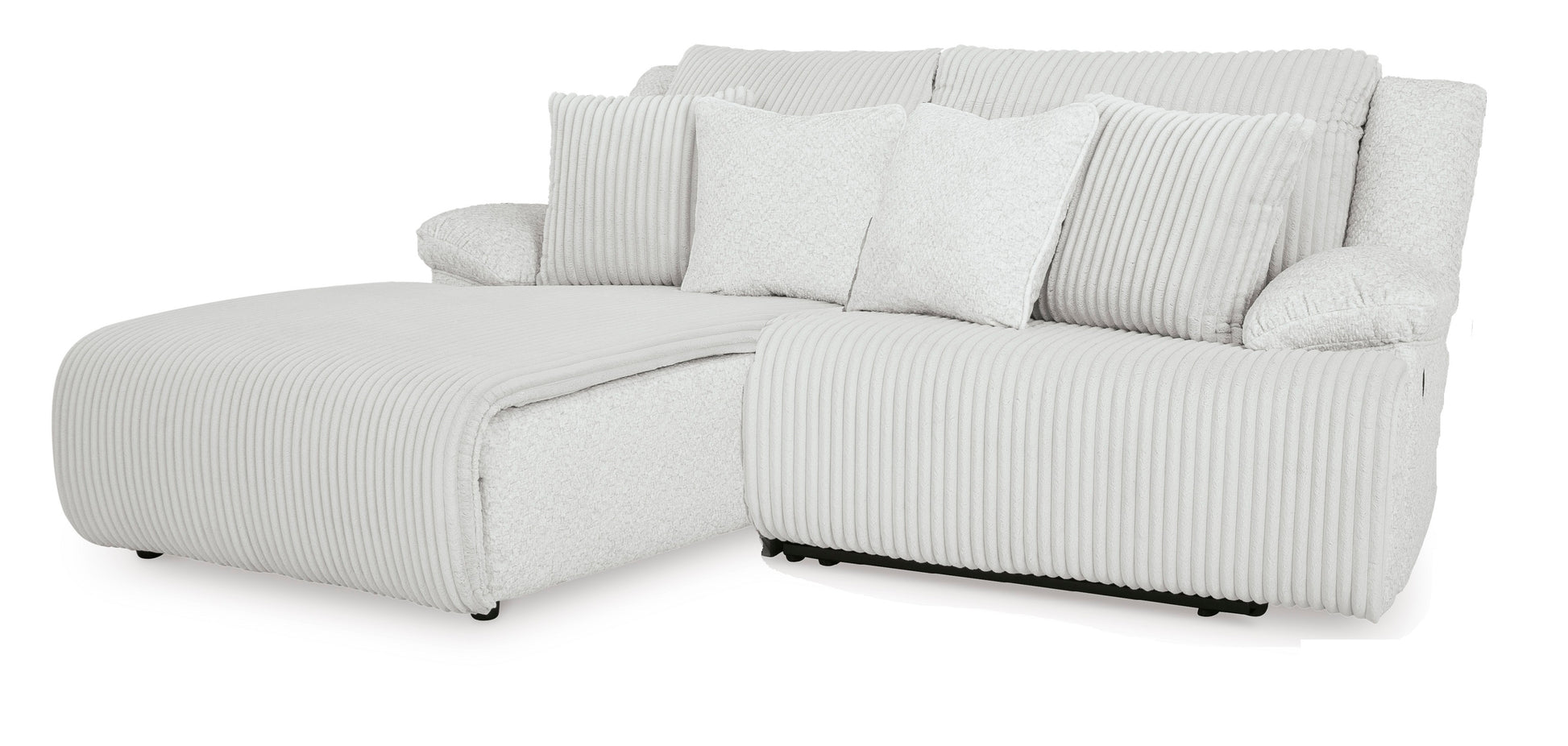 Experience unparalleled comfort with this reclining sectional. It’s a stylish and invitingly soft look—made all the more appealing by cozy corduroy cushions that feel great and add a touch of texture. The neutral hue effortlessly blends into your decor, making it a gorgeous addition to your home. So sit back and unwind in this spacious set, perfect for gatherings with friends and family.